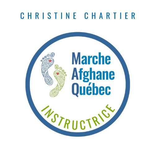 »J’ai suivi la formation initiation à la marche afghane offerte par Christine et j’ai été enchantée par celle-ci.  Christine est une formatrice dynamique, pédagogue et engagée, qui nous partage ses nombreuses connaissances.  Cette formation s’adresse à tous, puisque la marche afghane apporte des bienfaits, peu importe l’âge ou la condition physique de la personne ».